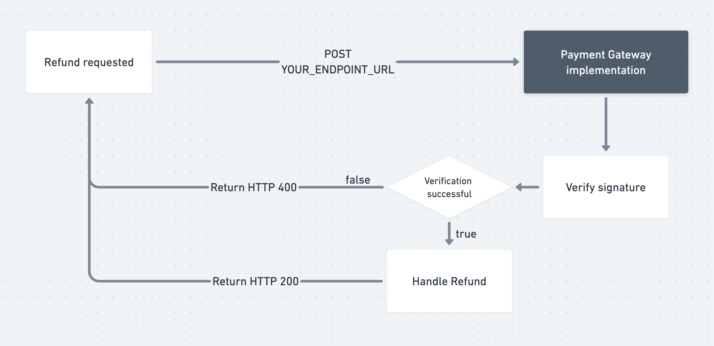Whenever a refund is requested we will POST to your endpoint and send a refund request.